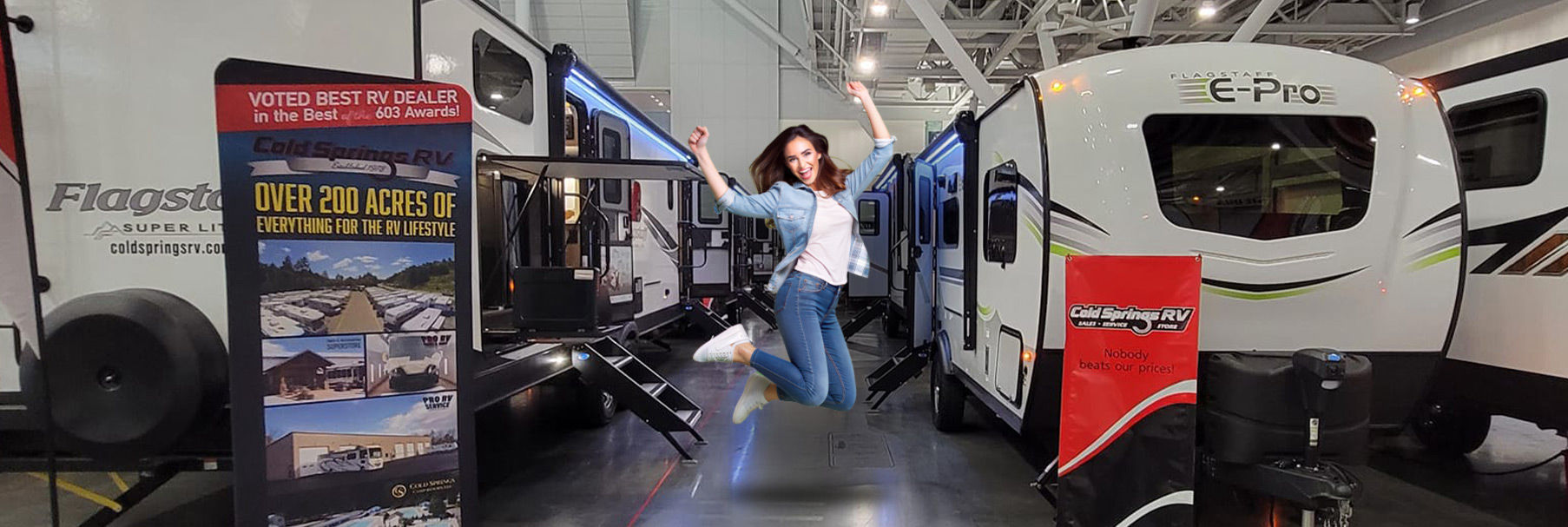 Sure, we're going to the RV Shows! But we can't bring ALL our great specials under one roof! So come to Cold Springs RV in Weare for all the best deals!